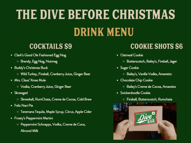 UNWRAP THE HOLIDAY SEASON WITH US AT DIVE BAR! Join us for over-the-top decorations, festive lights, and seasonal cocktails!